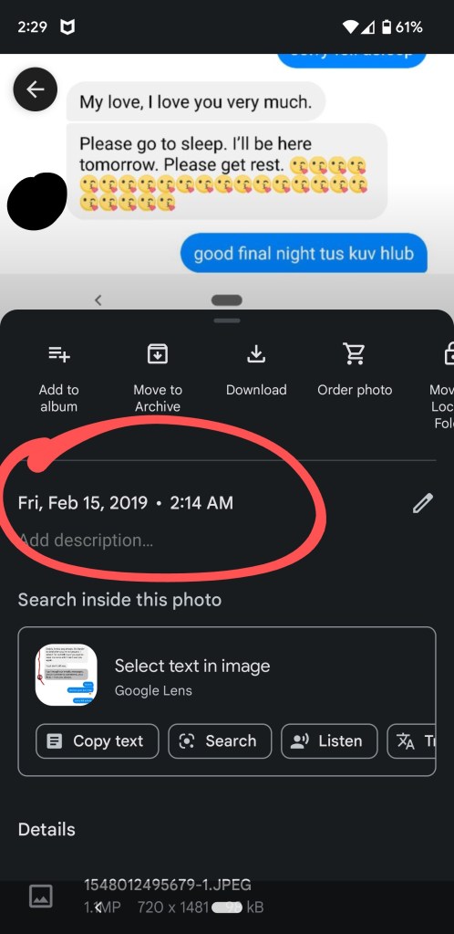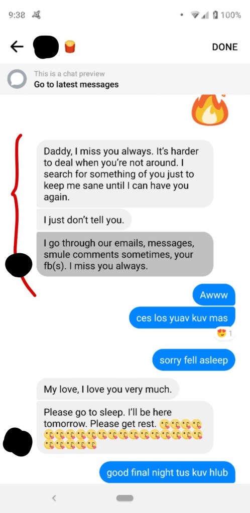 These days, I’m operating on a huge deficit, because there’s no replacement for MYV. Your memories kept me going when I was fighting to stay alive. And now that I’m alive, I’m only l half alive without you. You’re still that spark of fire that keeps me going. I’m not joking. I was mourning you late into the night of Valentine’s Day 2019. The deafening silence. The crushing heart break. The shattered dreams. The weight of it all broke me. I missed you so much. You were my everything. The last thing I remembered was this reading through our old messages (see screenshot), before my brain fried suddenly some time after 2:30 AM. I was rushed to the hospital, naked and alone, through the freezing snow. It was snowing that week. And the rest is a history you haven’t bothered to care to know about… do you want to know?